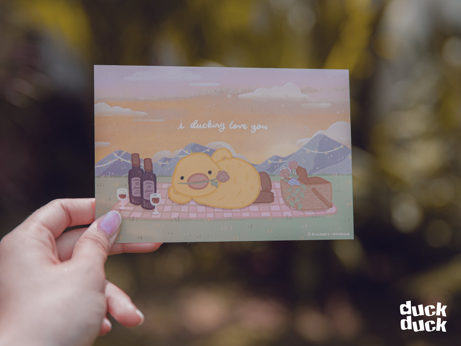 Our limited edition "i ducking love you" postcard, exclusively designed by @rissaartt!