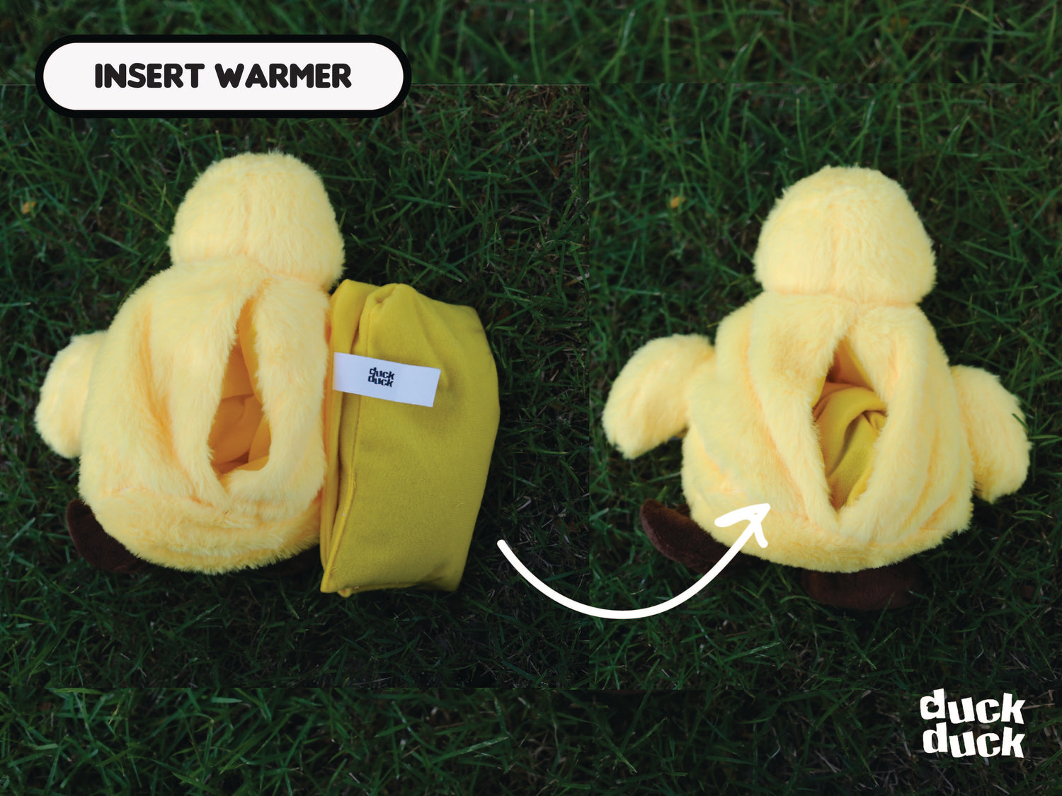 Your cuddly, microwavable duck with a sunny disposition — designed to keep you (or your loved ones) warm, cozy, and comforted. 🐥💛