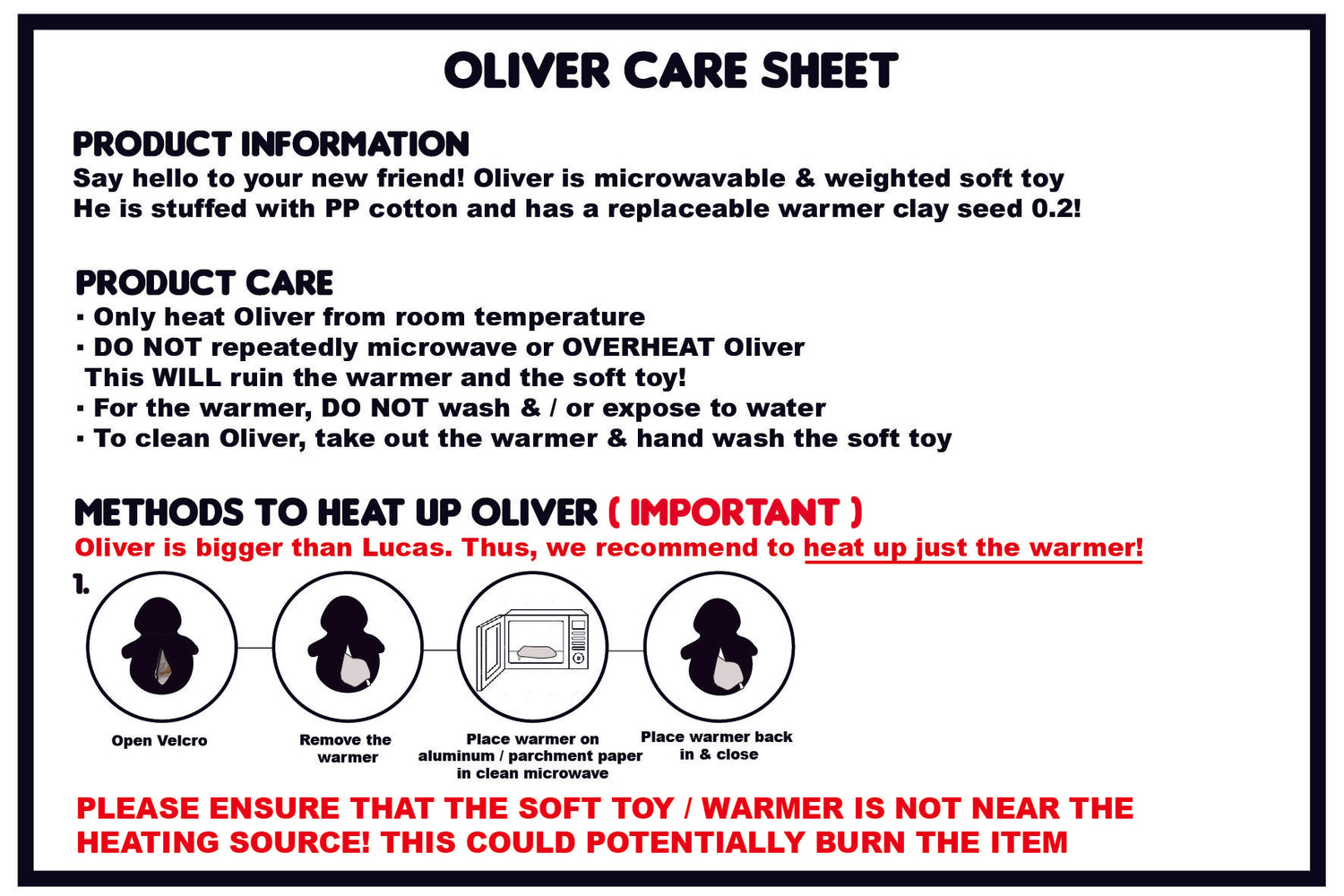 Do not put Oliver in the microwave! heat up only the Warmer!